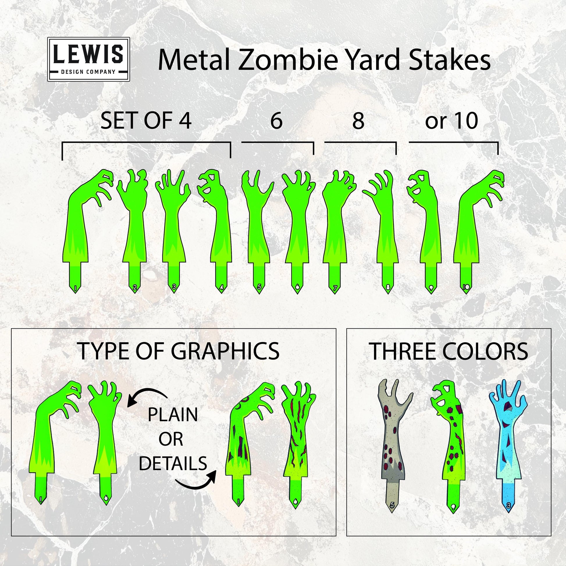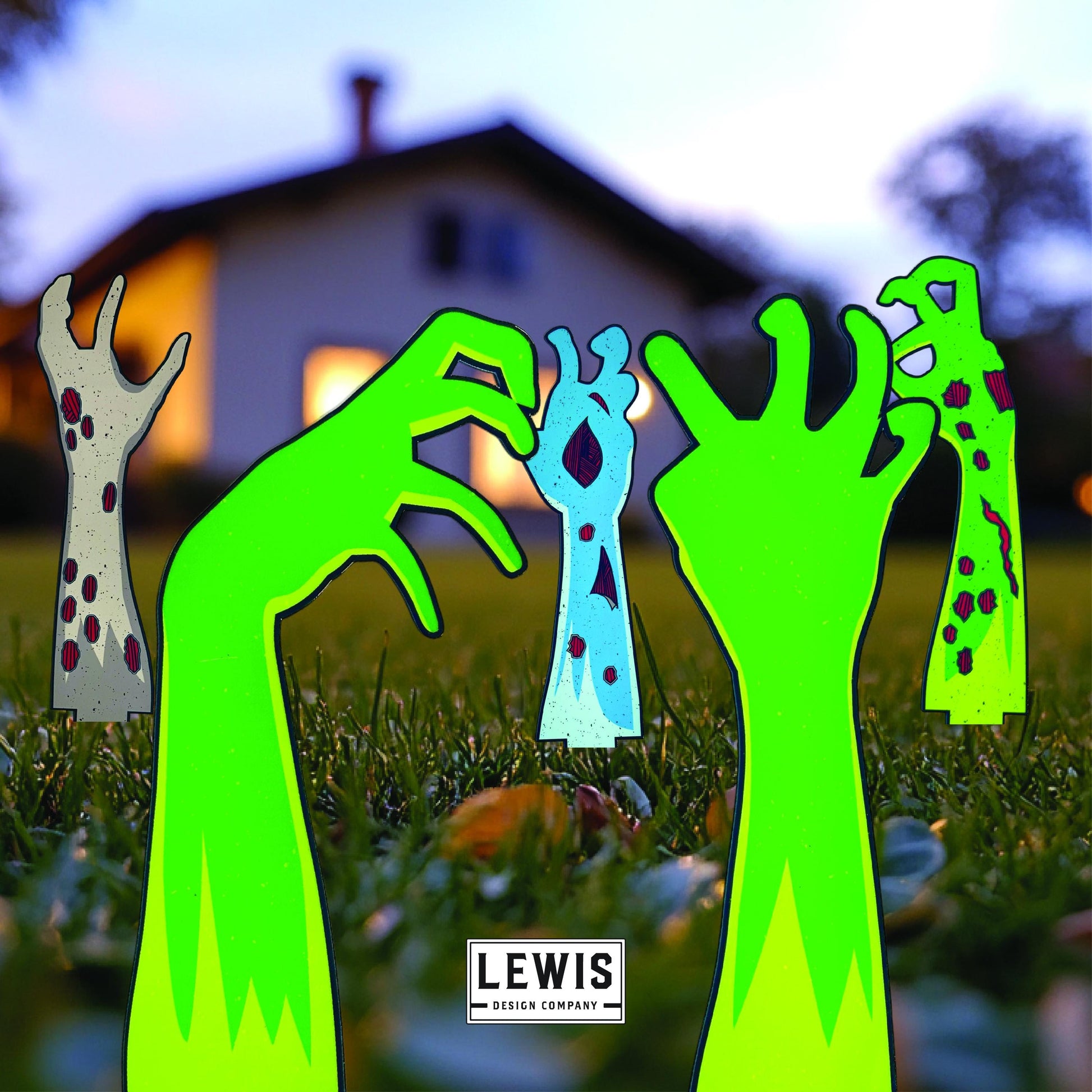 Get ready to be the talk of the neighborhood with Lewis Design Company’s latest Halloween yard decoration – our illustrated Zombie Hand Metal Yard Stakes. These eerie, eye-catching decorations are perfect for creating a spooky atmosphere that will leave an unforgettable impression on trick-or-treaters and guests alike.